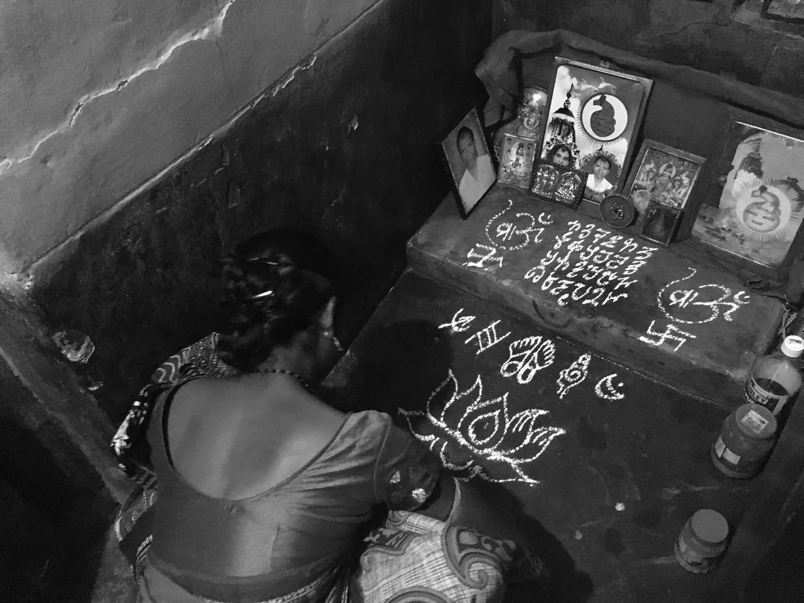In 1936, Mangaya Gomang allegedly discovered these alphabetic characters engraved on a stone after praying to receive a script for his people; and founded a religious movement whose adepts worship these letters. The reading and writing of this script are skills held by the religious specialist of the Matharvanam movement; and each letter is associated with a spirit. During rituals, a paji'ingda'a (or 'water of spirits') is prepared by one religious specialist verbally reciting the name of each 'spirit-letter' and another religious specialist tracing the character on a slate with chalk. Then the slate is washed with turmeric water, collected, and distributed to devotees so that they may drink the divine letters. Guillaume-Pey C. (2021) A Script 'good to drink': The invention of writing systems among the Sora and other tribes of India. The Social and Cultural Contexts of Historic Writing Practices.